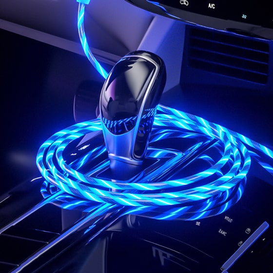 Cool cord, with illumination. Soft (elastic), it is visible from the distance that charging is made.