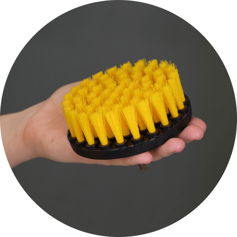 Medium-stiff nylon on all brush heads attach effortlessly to any cordless drill.