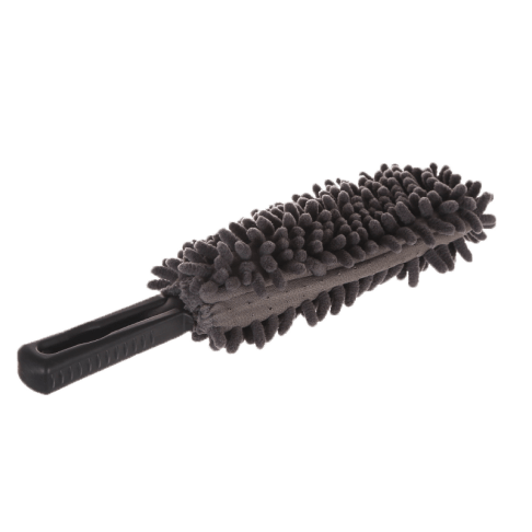 Our Microfiber Car Duster measures 13” x 3” (L x W) with a plastic handle, for ample length that’ll reach and clean.